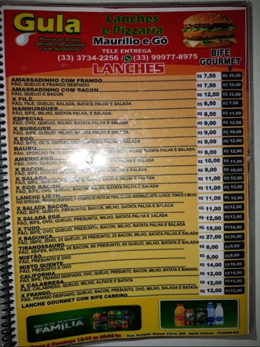 Gula - Pizzaria e Hamburgueria in Itaobim, MG, is a vibrant hotspot blending traditional pizzas, gourmet burgers, and regional snacks. Their menu highlights range from classic lanches like the Amassadinho com Frango to signature gourmet options such as the Smash and Cheddar Bacon Burguer. The variety is impressive, with specialty pizzas like Tiquim and Carne Seca earning high praise for quality and authentic flavor.